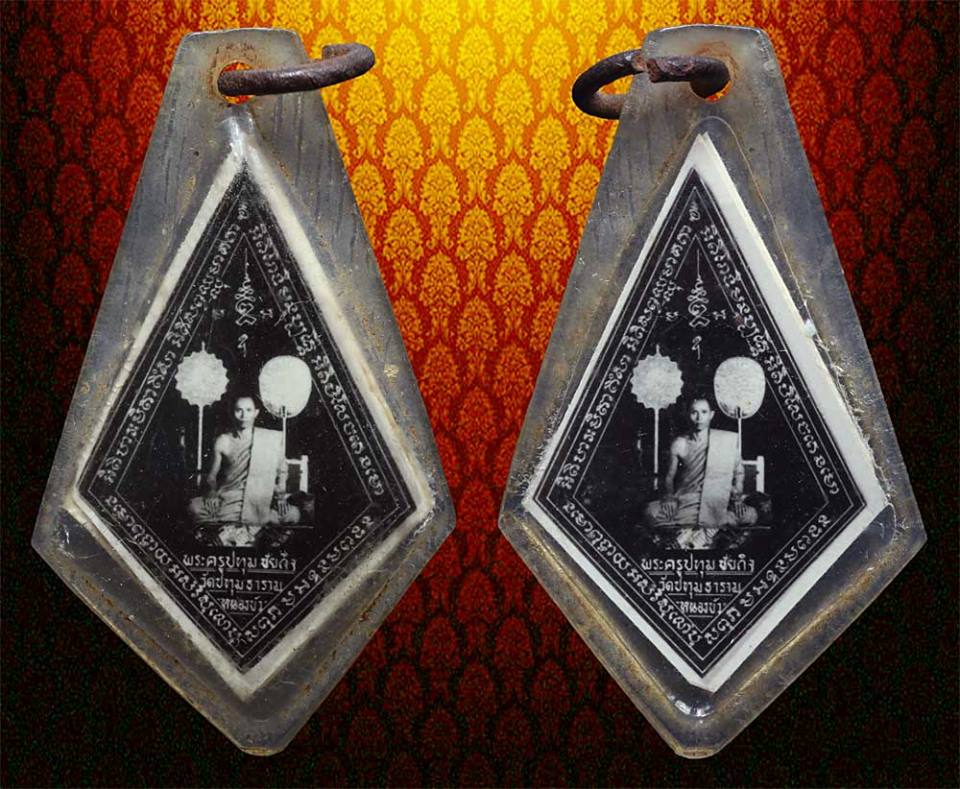 วัตถุมงคลภาพถ่ายรุ่นแรกพัดคู่ 2 หน้า ข้าวหลามตัด ปี 2511
